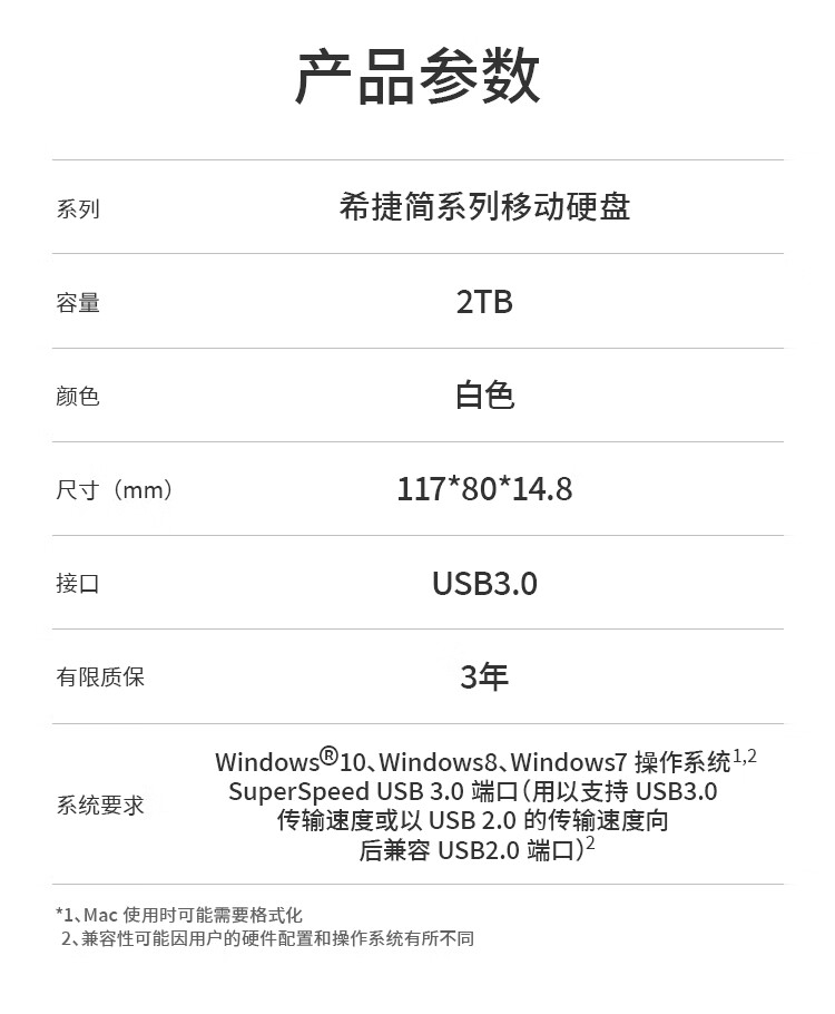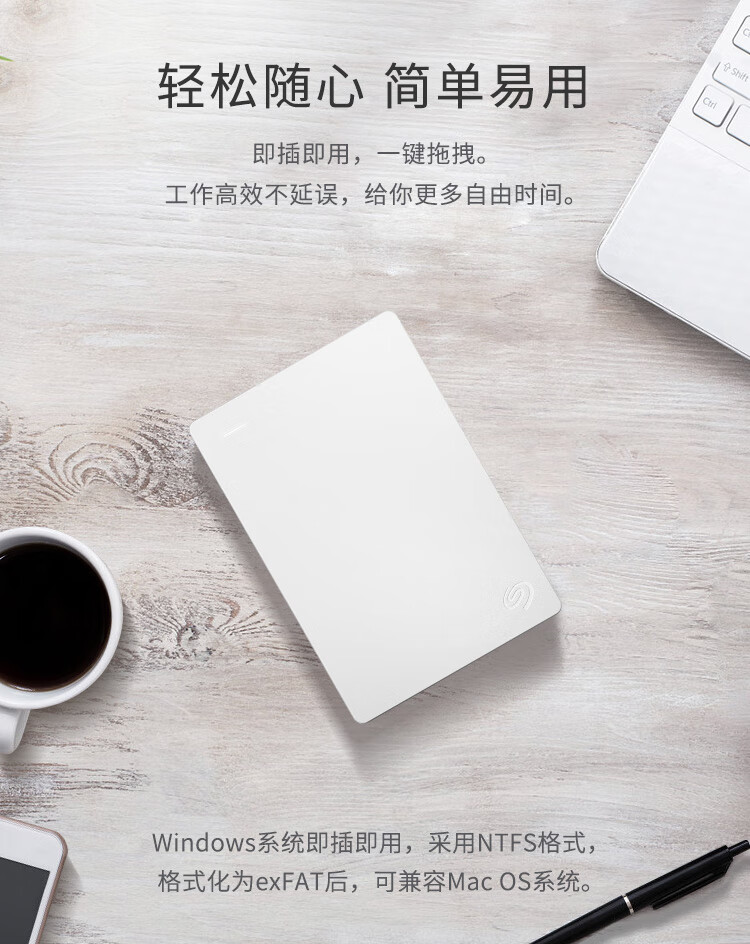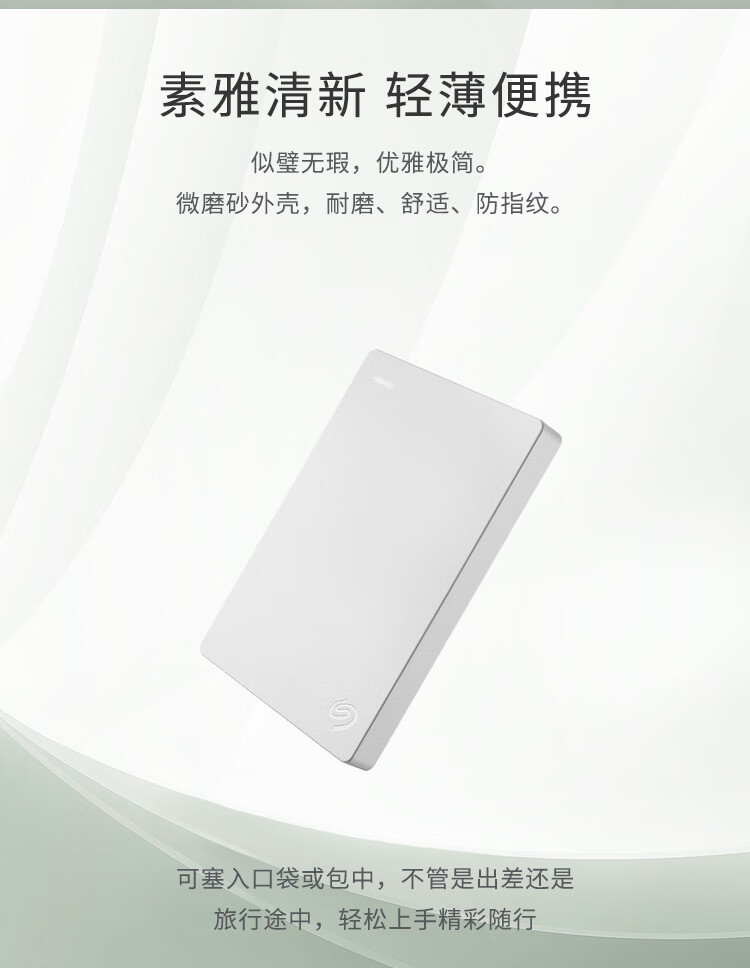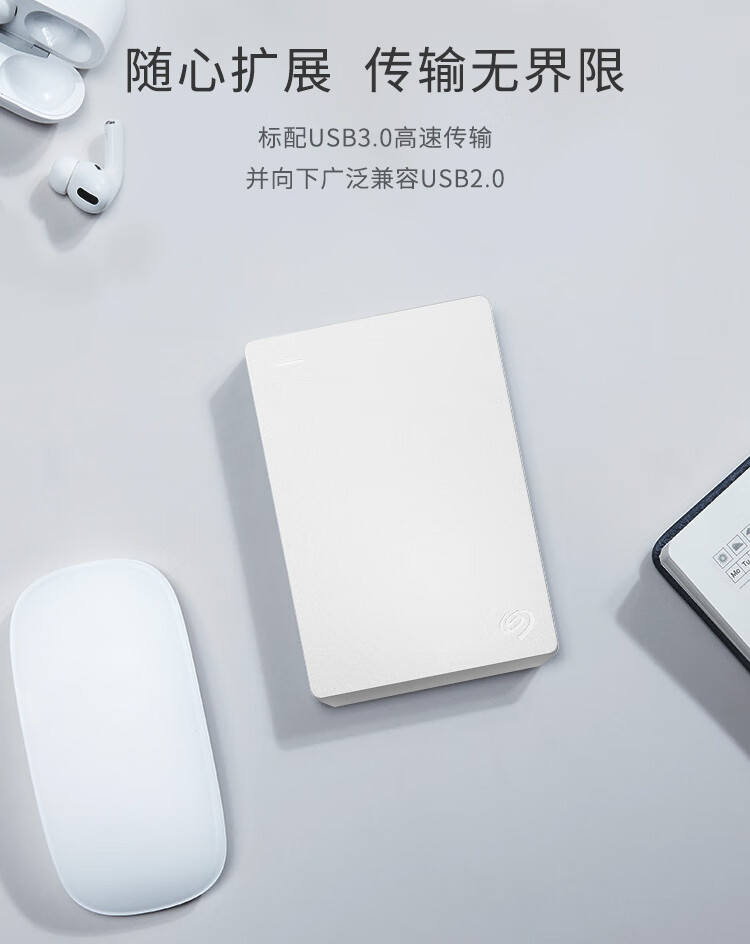 希捷(Seagate) 移动硬盘 2TB USB3.0 简-素雅白 2.5英寸 高速便携 兼容PS4